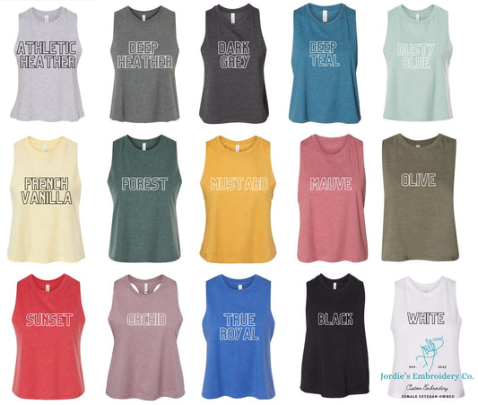 Women's Racerback Cropped Tank Custom Embroidered Bella + Canvas